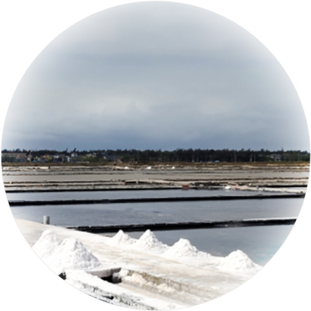 渤海湾长芦盐区海滩宽广,泥沙布底,原料海水进入滩田后,经过十余个步骤的自然晾晒,依靠天然泥沙超强的吸附能力,完成卤水特理净化。这里光照充足、雨水和季节气候明显,是海盐的黄金产地。