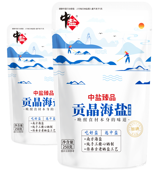 产自福建莆田。莆田盐场产盐历史悠久,自元代即置场产盐。本品以台湾海峡深层海水为原料,采用千年古法自然滩晒工艺,匠心制造品质好盐。